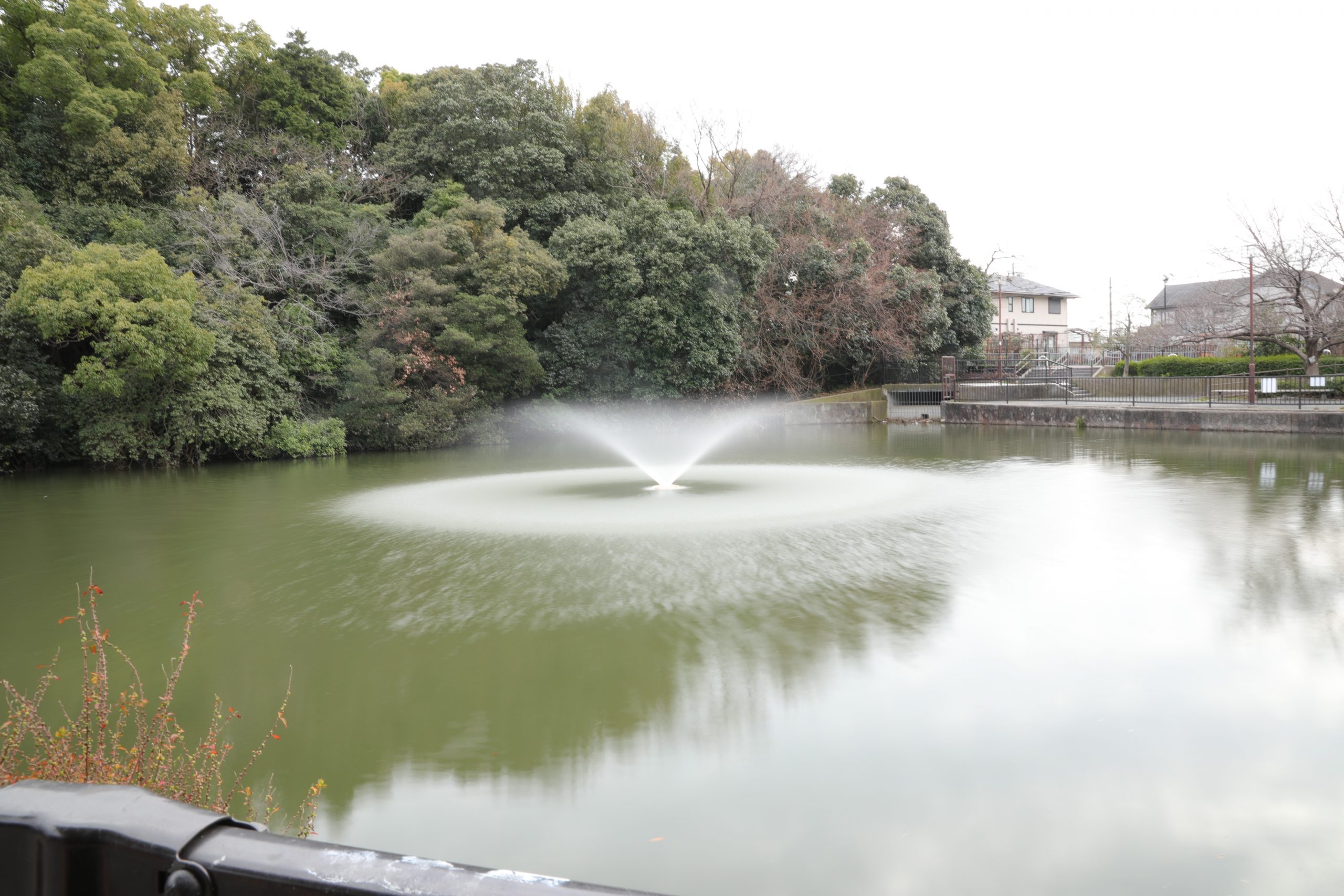 公園には、池があって裏には蜂田神社があります。