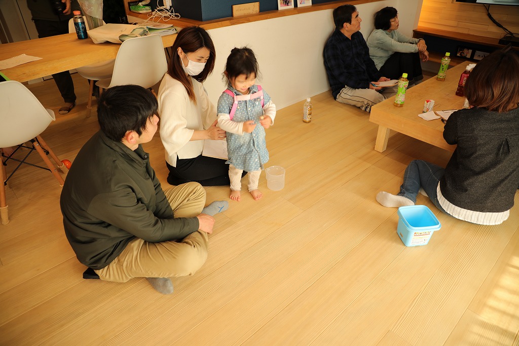 今回は、すでに住まわれている方と現在工事中のご家族。それにこれから家づくりを始められるご家族にご参加いただきました。