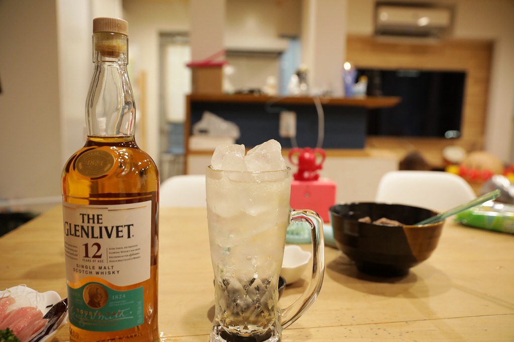 その後はお客さんにおみやげで頂きましたウィスキーでハイボールを飲みます!