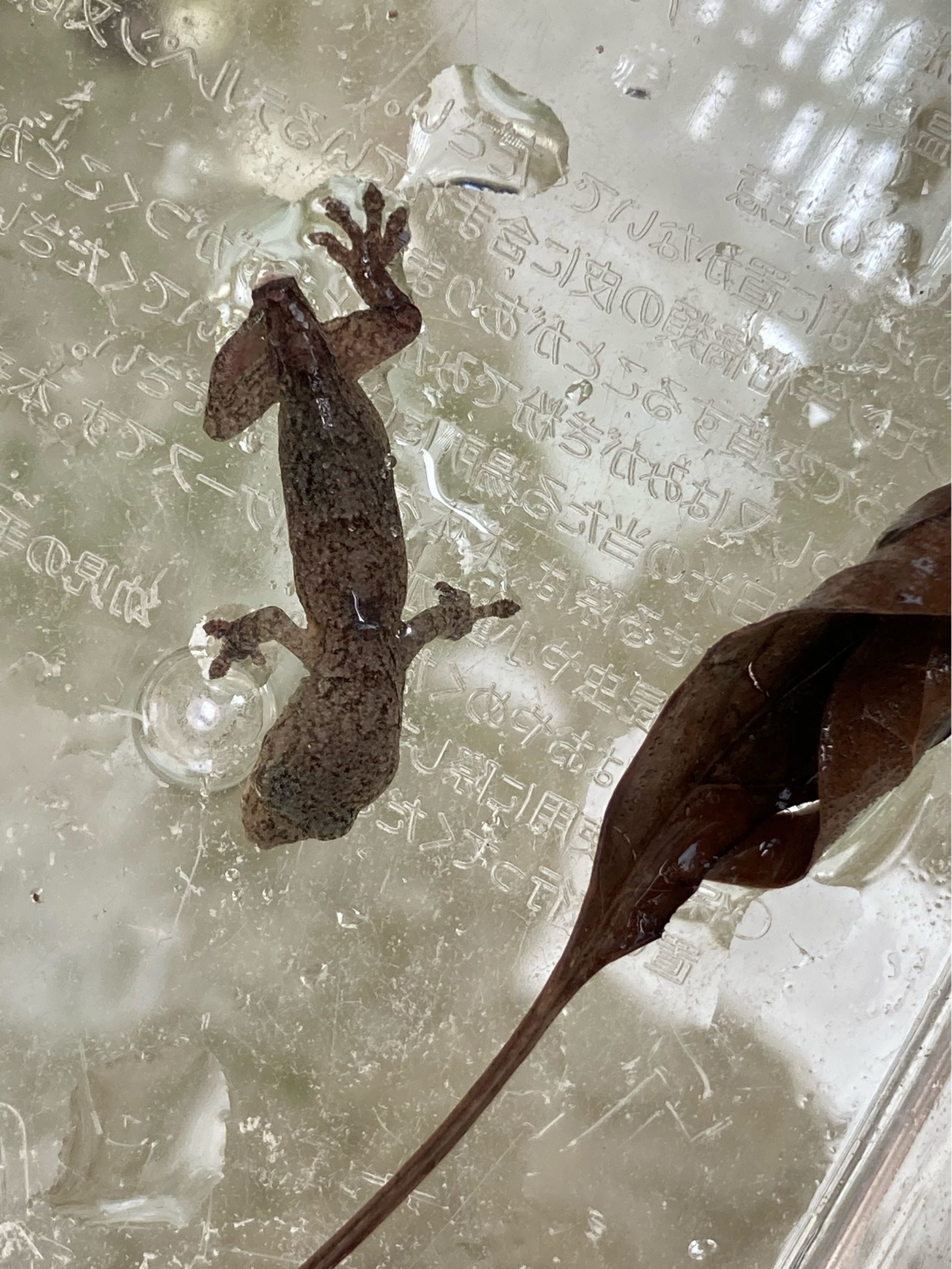解体したデッキの下からしっぽが切れて弱ったトカゲがいました。