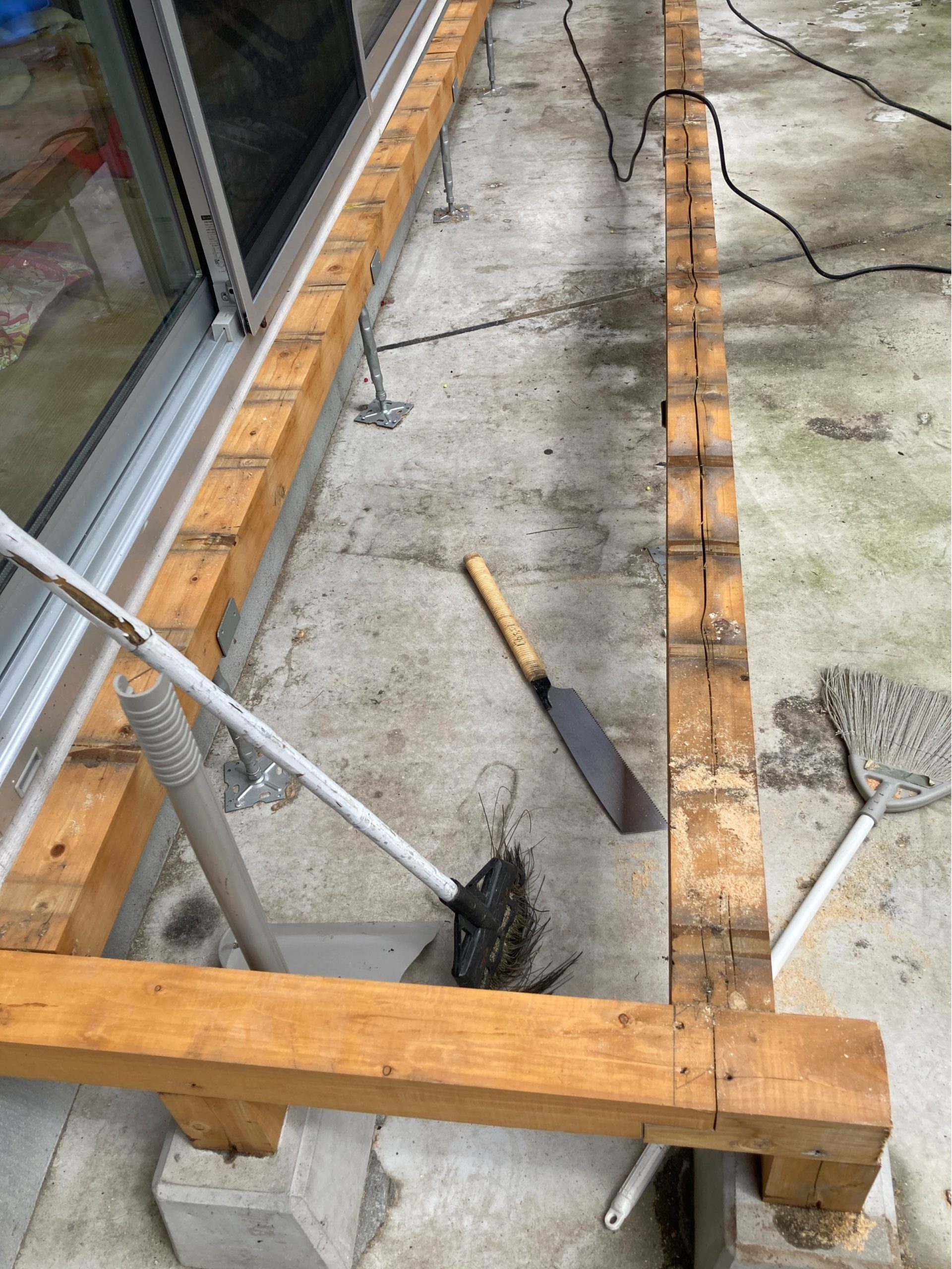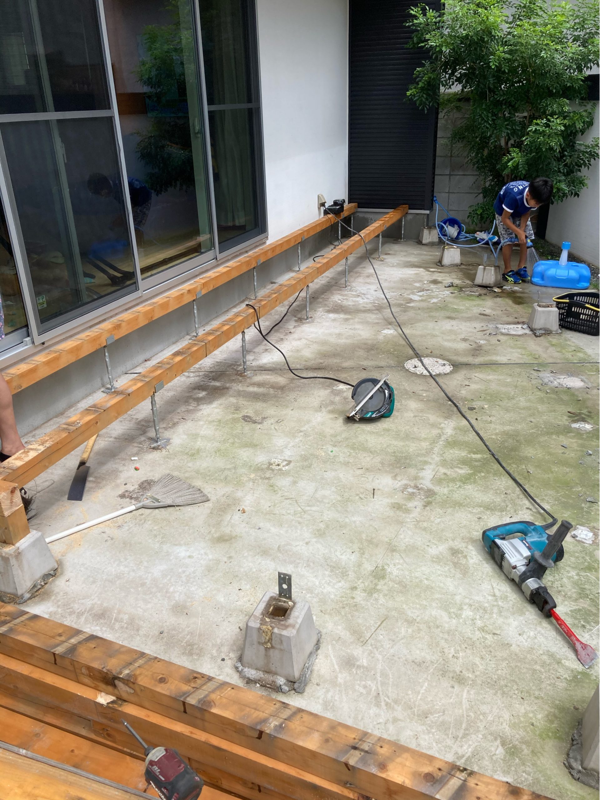 昼から家に帰って、庭のウッドデッキを縁側に改造する事にします。