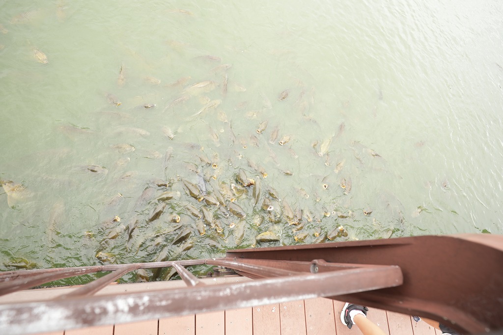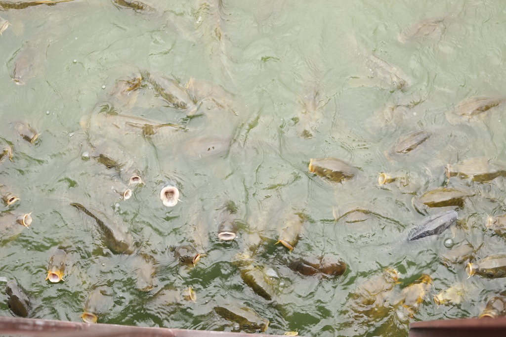 鯉にエサをあげました。