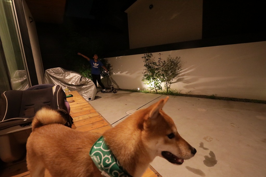 その後はハチと一緒に先週作った縁側で晩酌です。