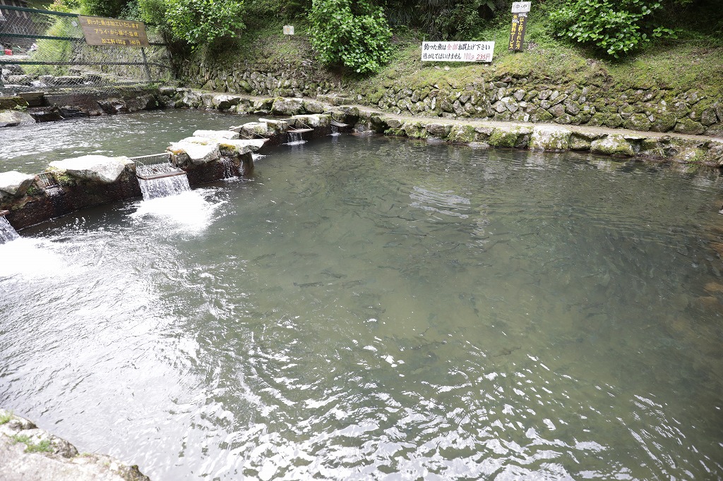 ここではニジマスが放流されていて餌と竿合わせて600円ほどで釣りが楽しめます。