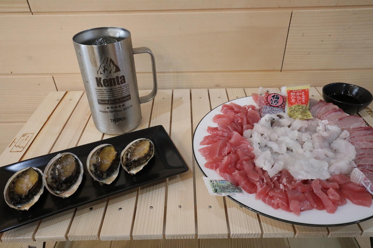 鱧にマグロにタコにはまちとアワビを買いました。