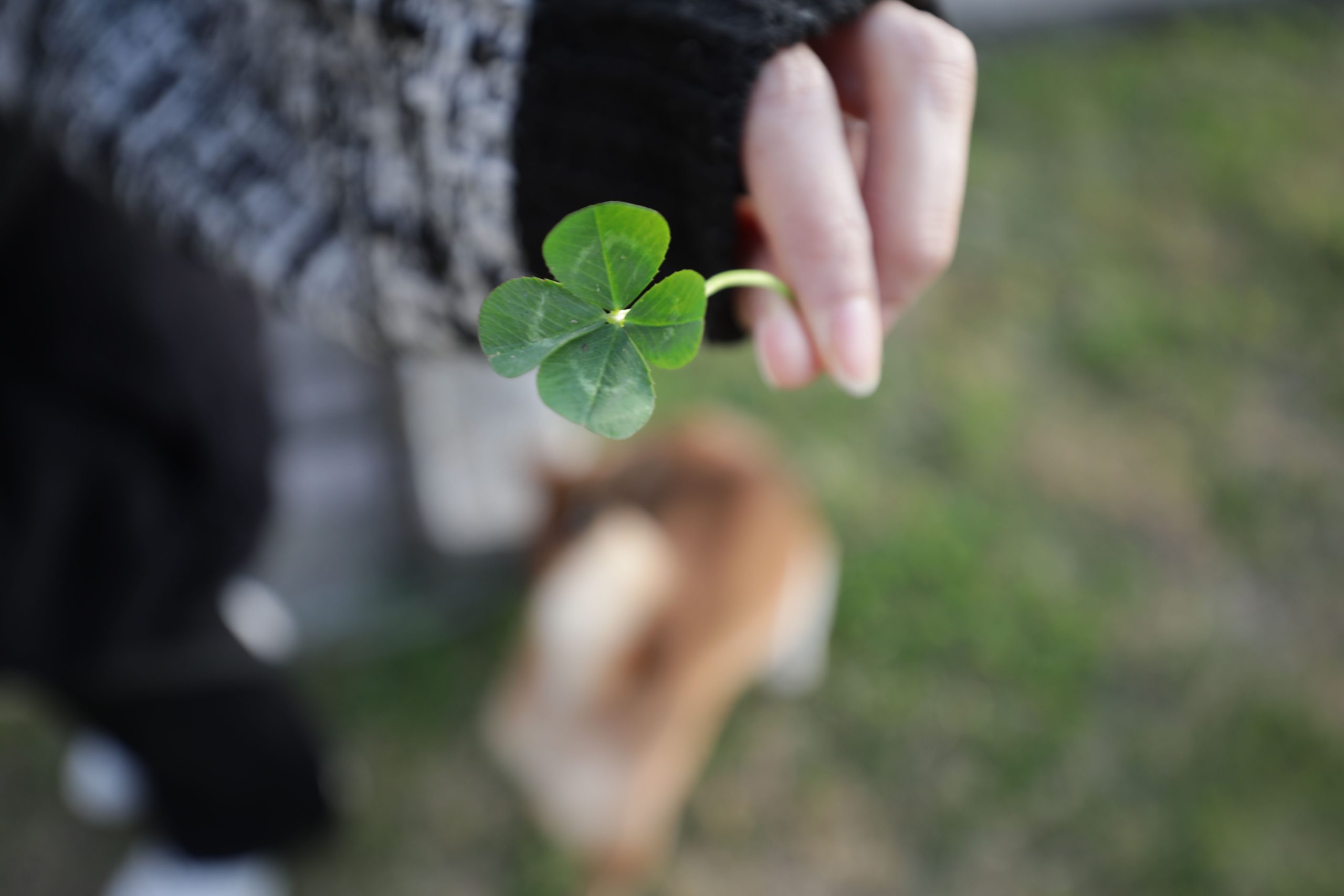 妻が四葉のクローバーを見つけました。探すのがすごく得意で大体公園につくとすぐ見つけます。