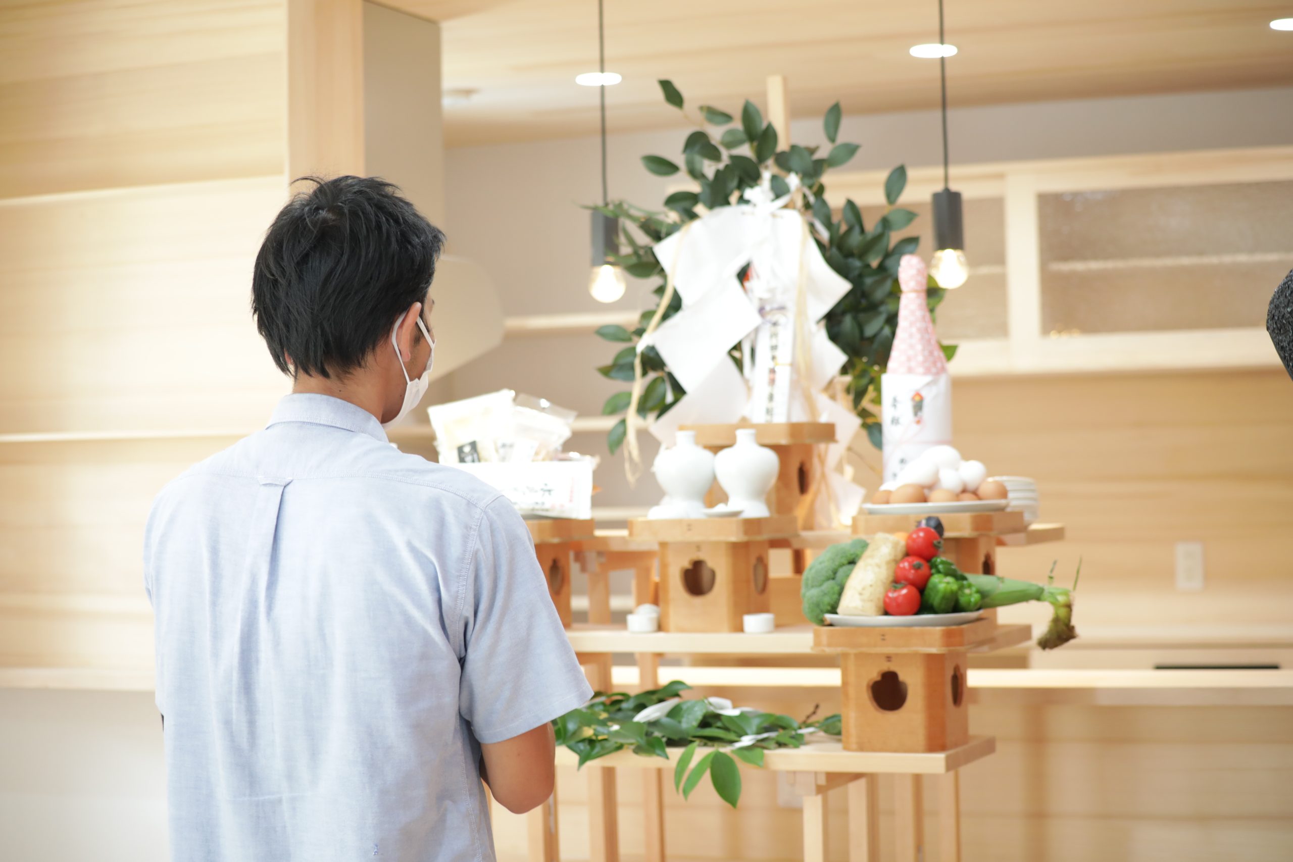 上棟式はいつも夕暮れ前に行います。