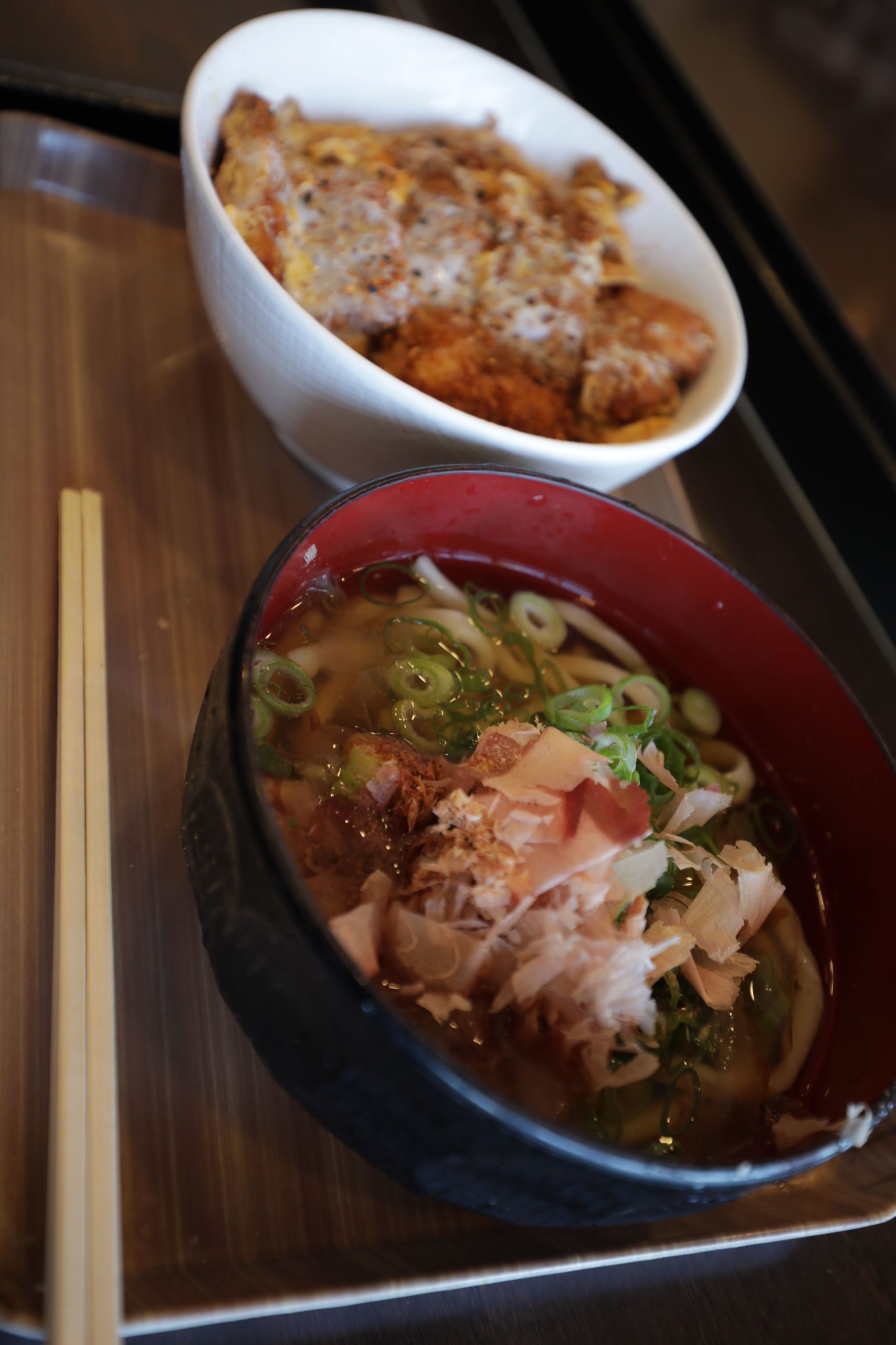 インターを降りて伊勢うどんにかつ丼の定食をいただきます(^^)/
