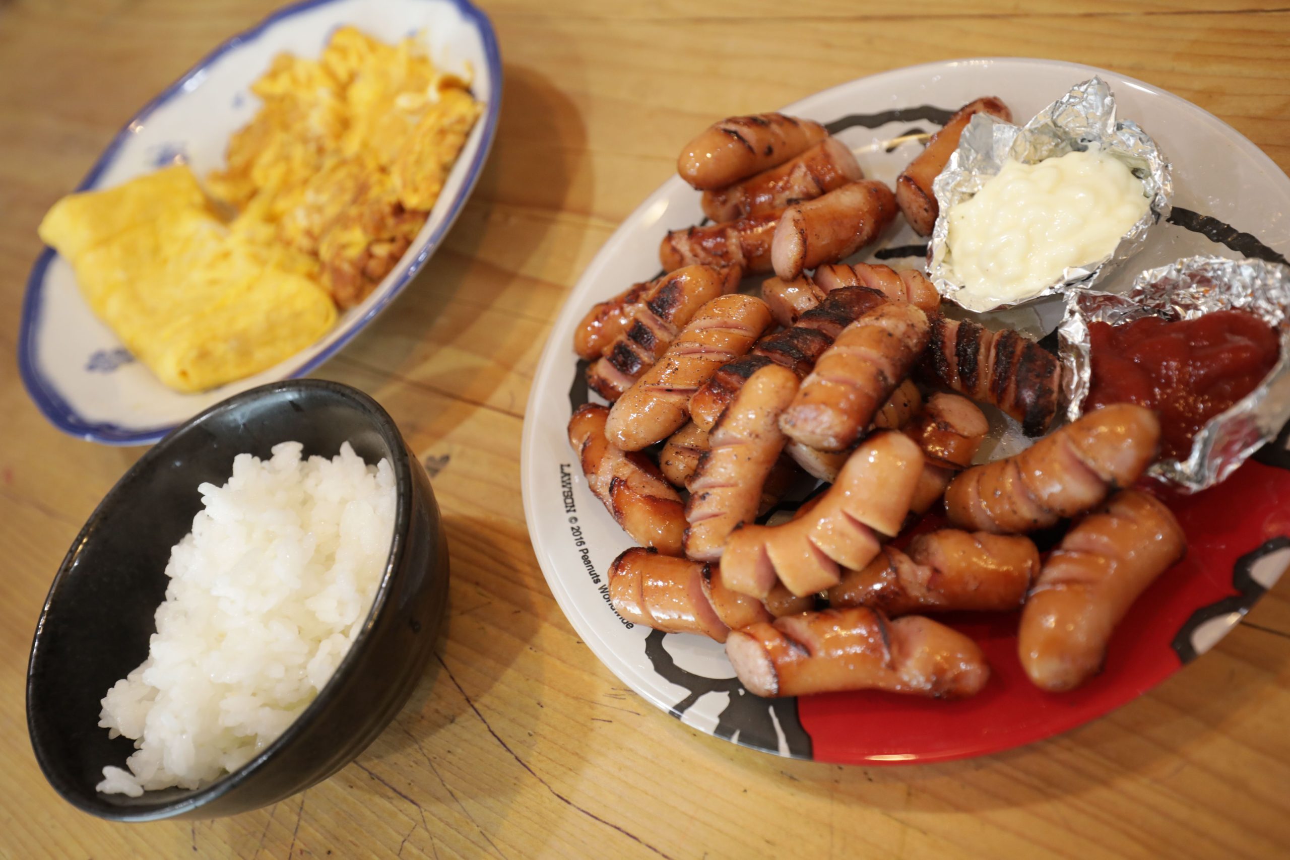朝ごはんはウィンナーとたまご焼きと味噌汁を作りました。