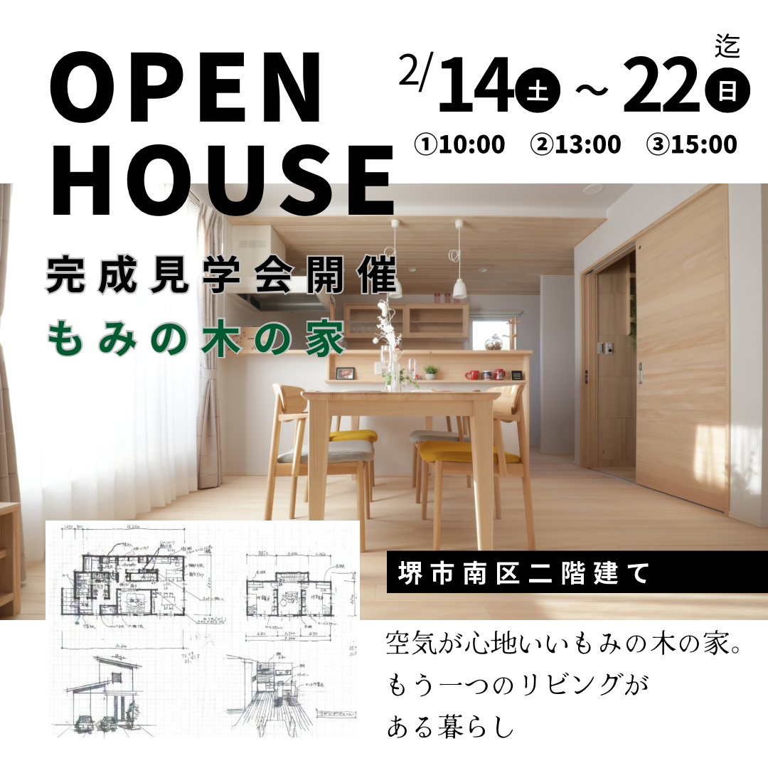 堺市南区にて完成見学会を開催します。※場所の詳細はご予約確定後お伝えいたします。