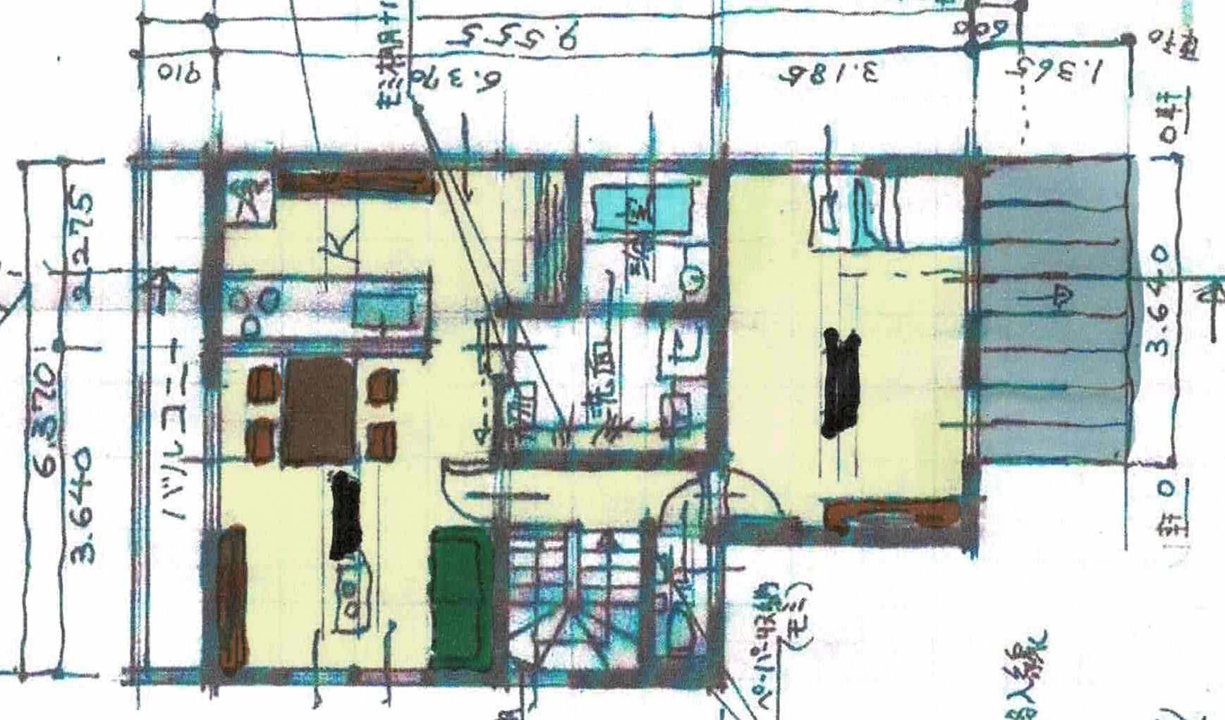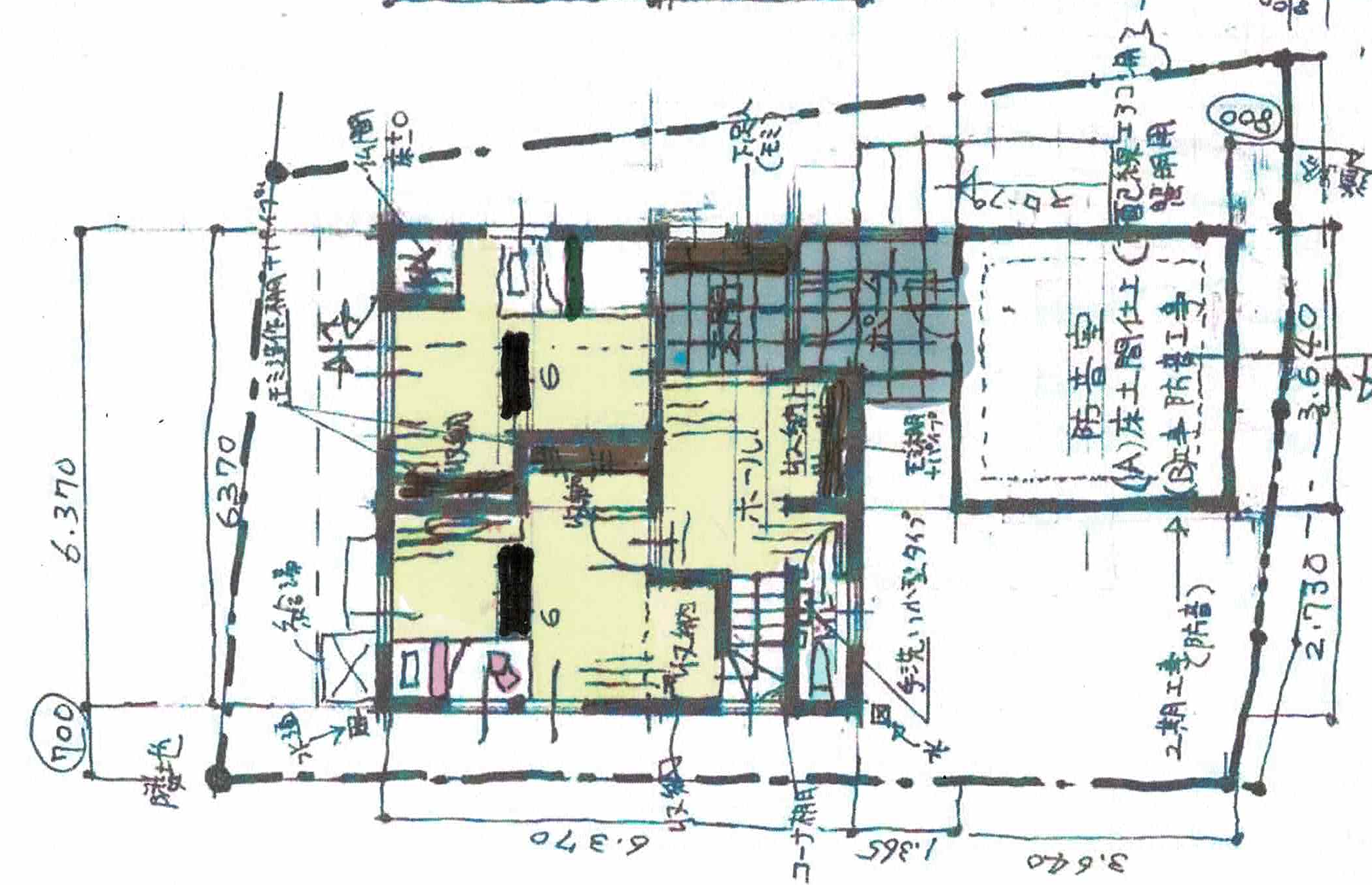 今回の家の特徴ですが、音楽好きの施主様が音を気にすることのないよう演奏できるスタジオ付きのもみの木ルーム併設です。