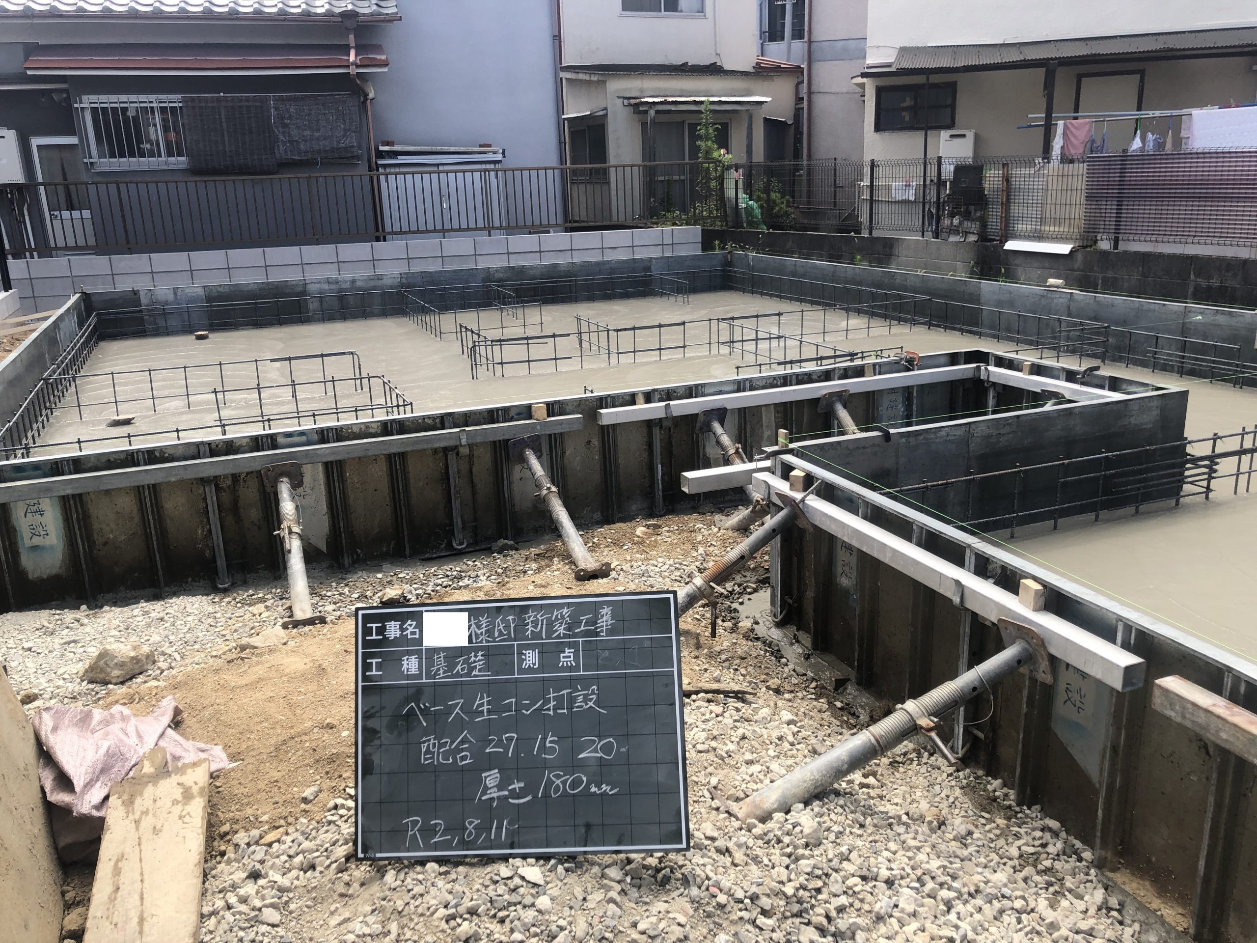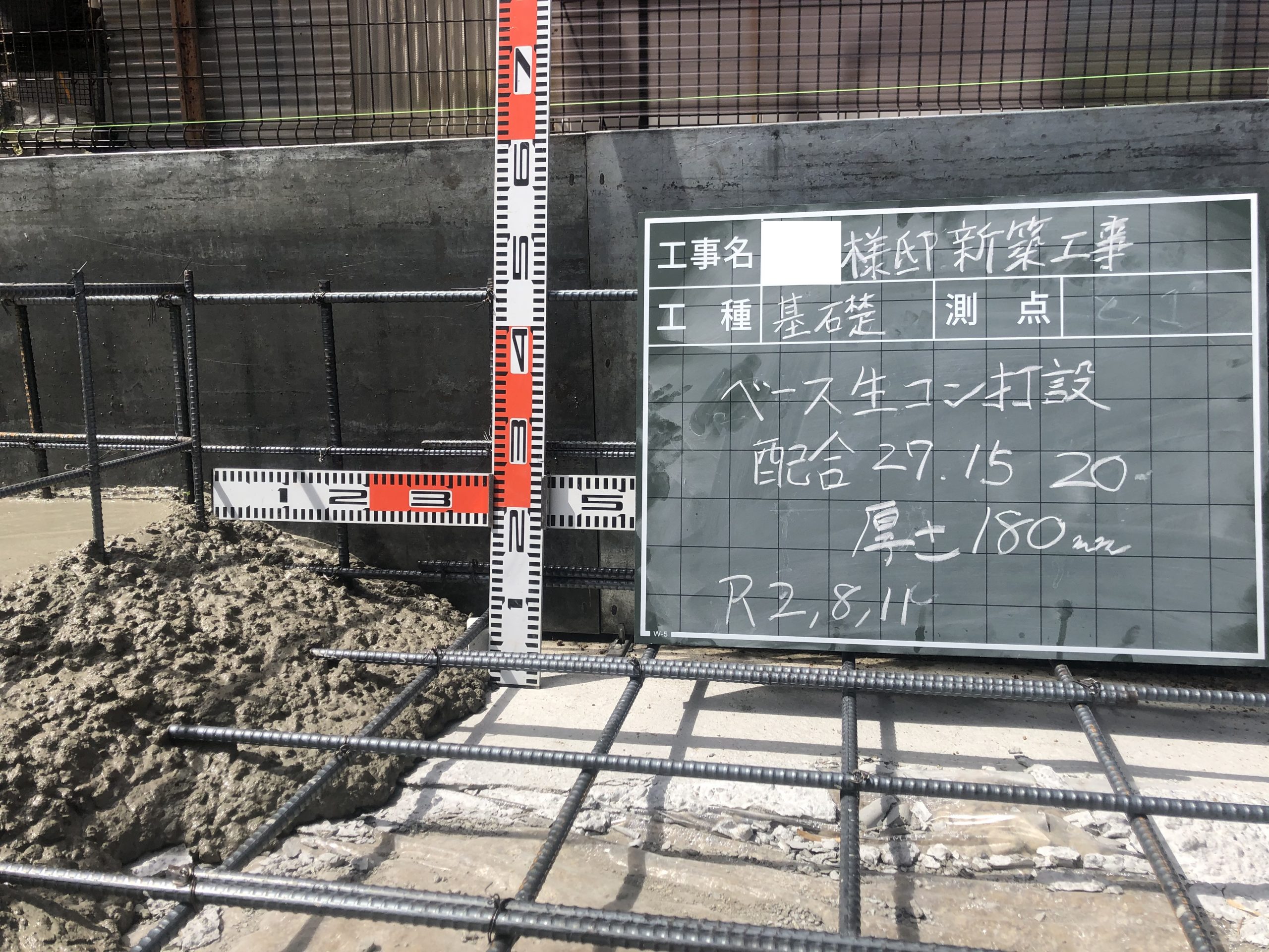 鉄筋の配筋検査後にベースコンクリートを流し込んで行きます。