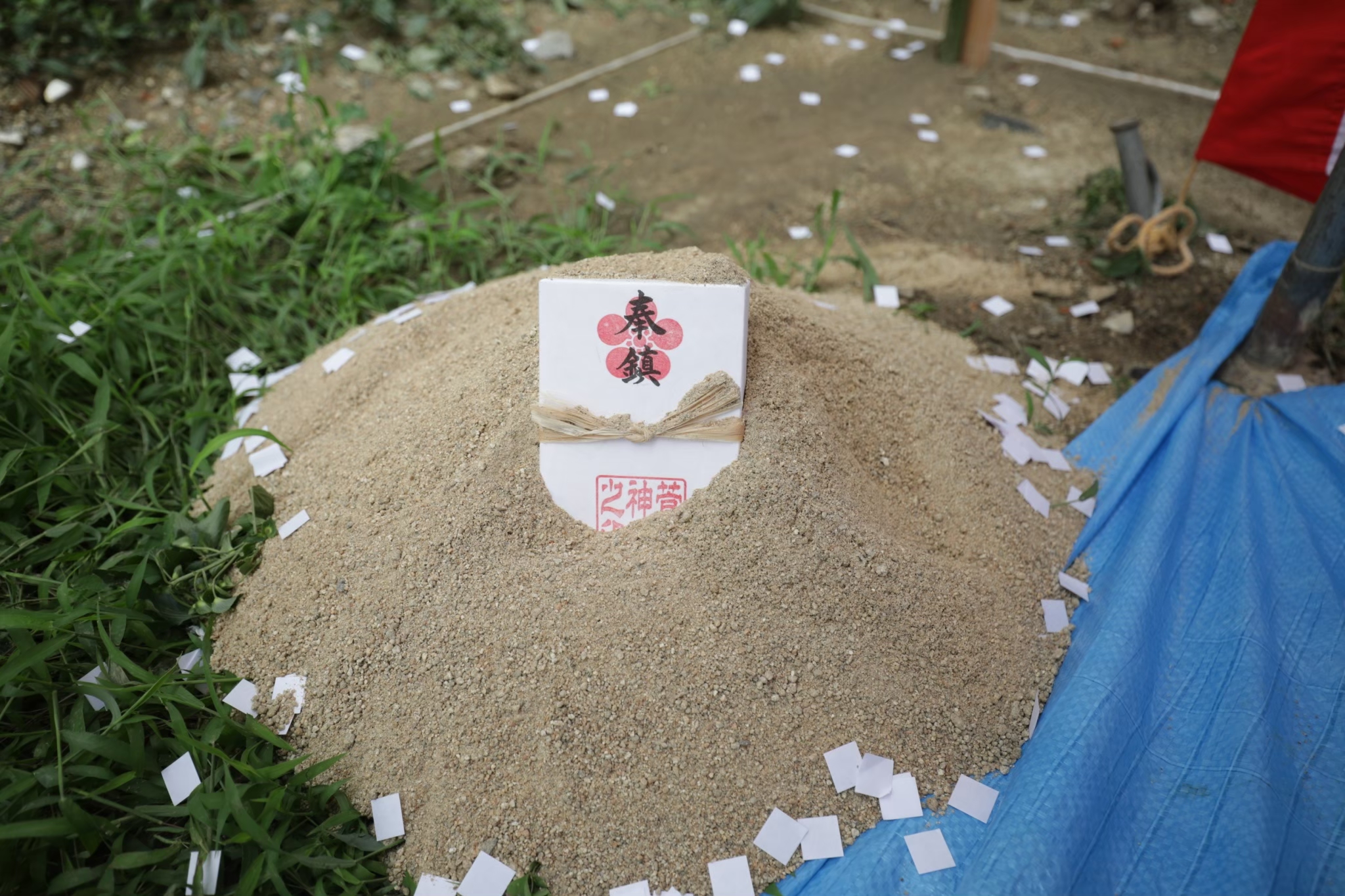 基礎工事中に鎮めるため、目にするのは地鎮祭の時だけになります。