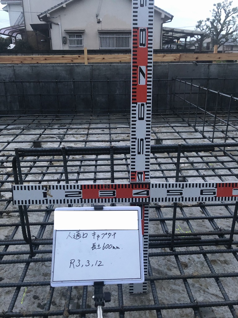 土に接する部分の鉄筋かぶり厚(鉄筋と土戸の隙間)は、60ミリ以上とりコンクリートが十分いきわたるようにします。