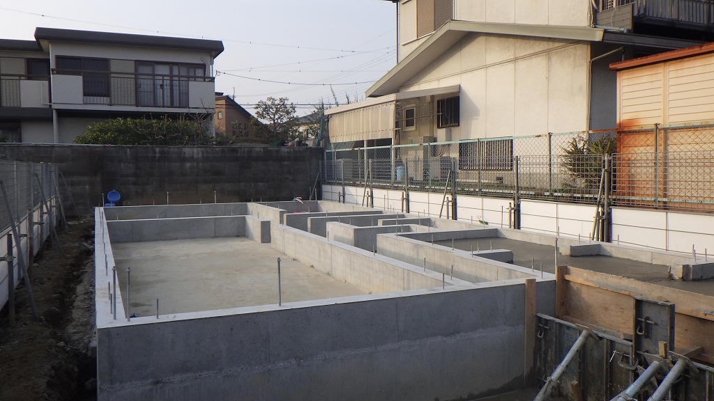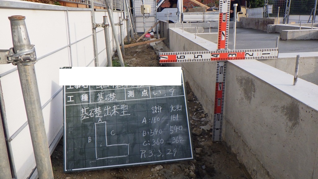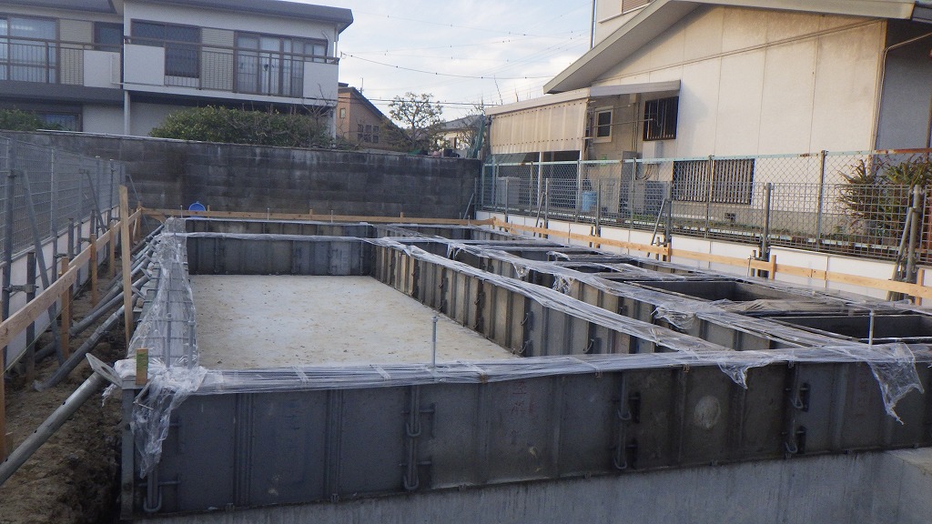 養生期間を終え、立ち上がりの型枠が組まれています。