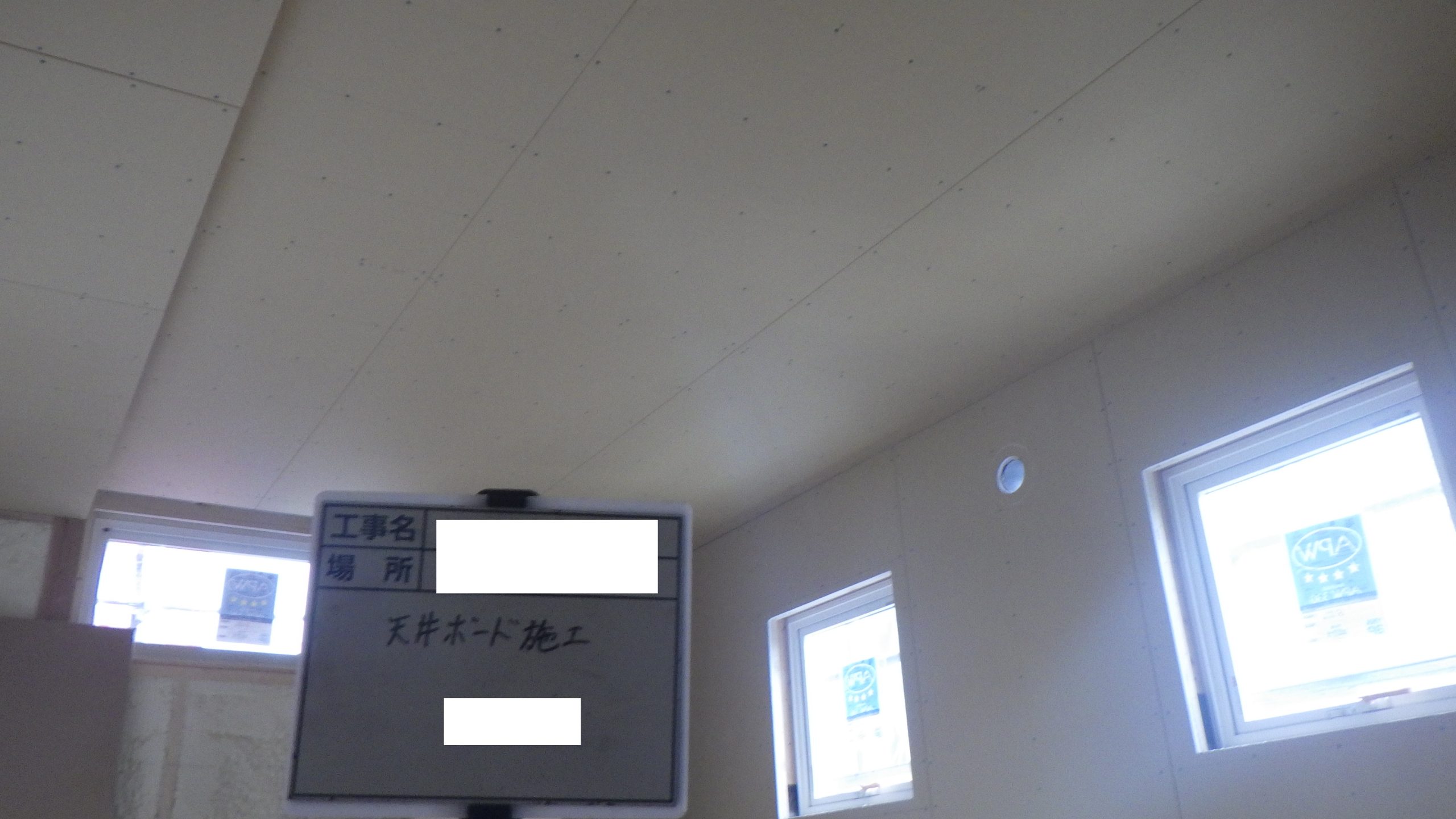 その後、天井・壁面にプラスターボードを貼っていきます。